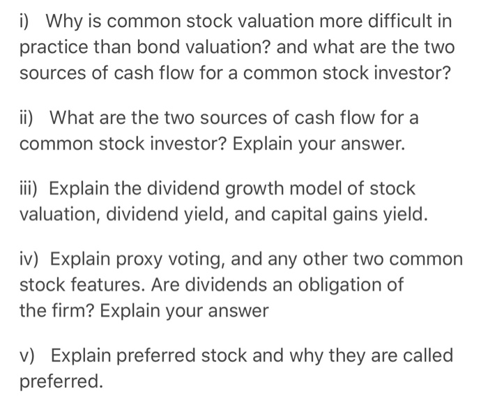 Solved I Why Is Common Stock Valuation More Difficult In Chegg Com